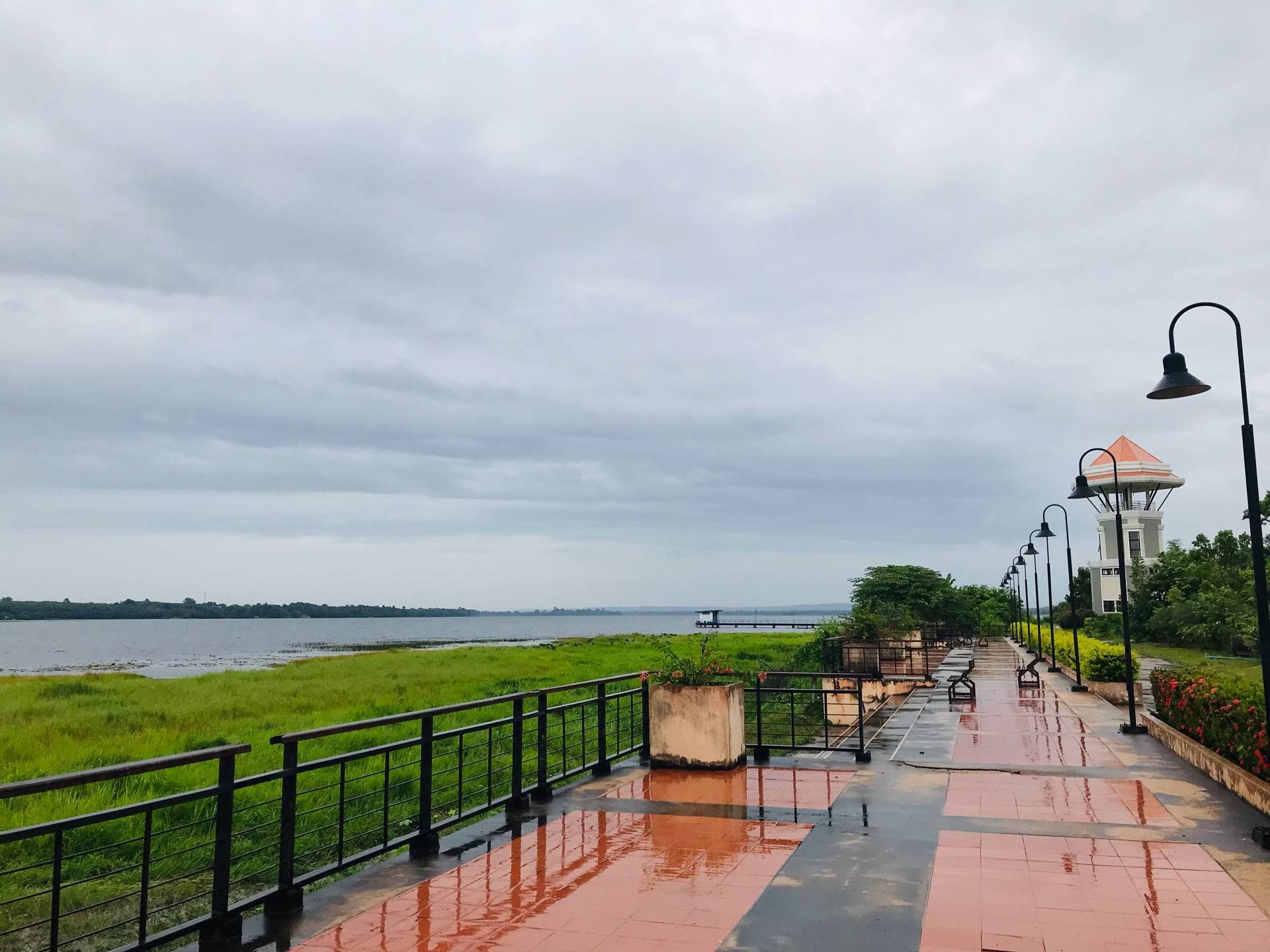 เมื่อกลุ่มผู้ขายกลุ่มเล็กๆ เริ่มตั้งแผงขายหลังคาสีแดงตรงทางเดินริมแม่น้ำ คุณไม่สามารถมองเห็นได้ พื้นที่ริมแม่น้ำทั้งหมดมีชีวิตชีวาในเวลานี้ด้วยการวิ่งจ็อกกิ้งและพาสุนัขเดินเล่นใช้ประโยชน์จากลมเย็นและฉากหลังที่สวยงามของดวงอาทิตย์ที่จมลงสู่แม่น้ำโขงอย่างเอื่อยเฉื่อย